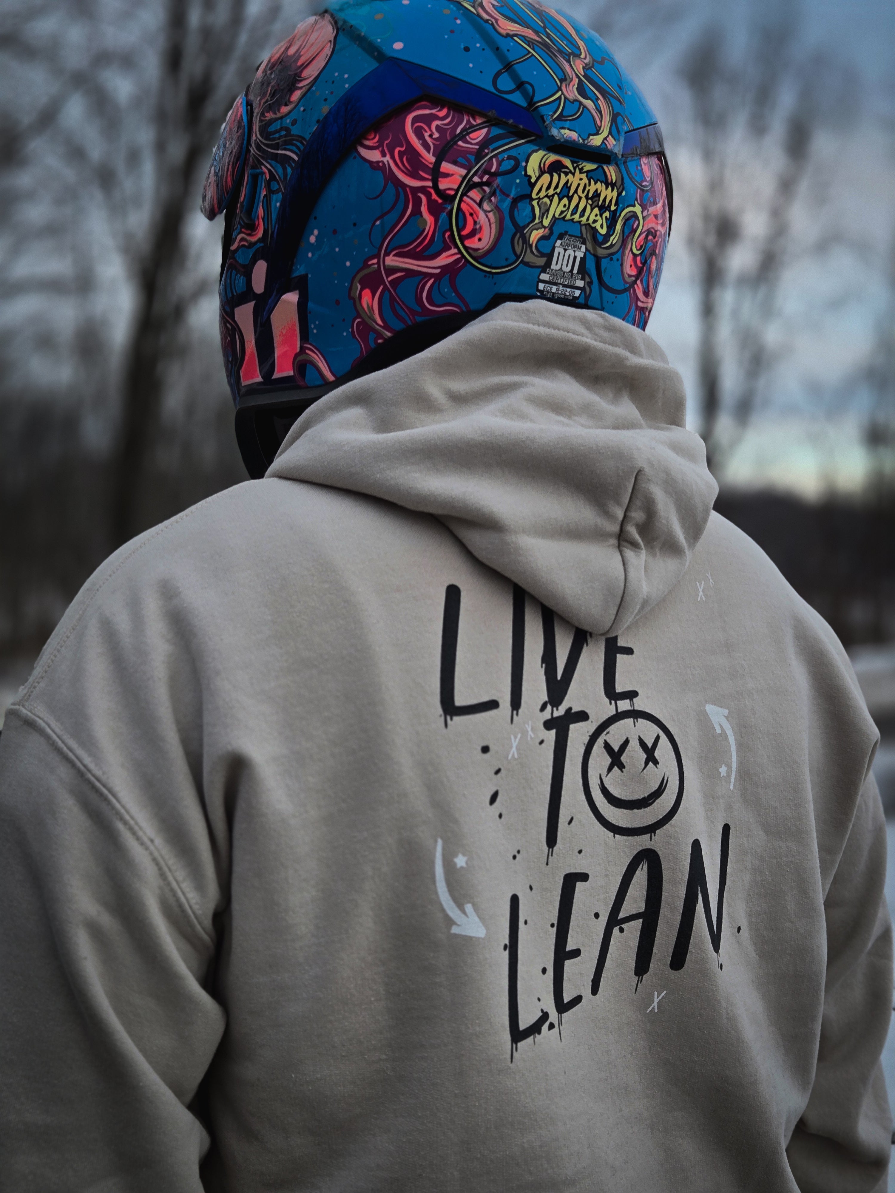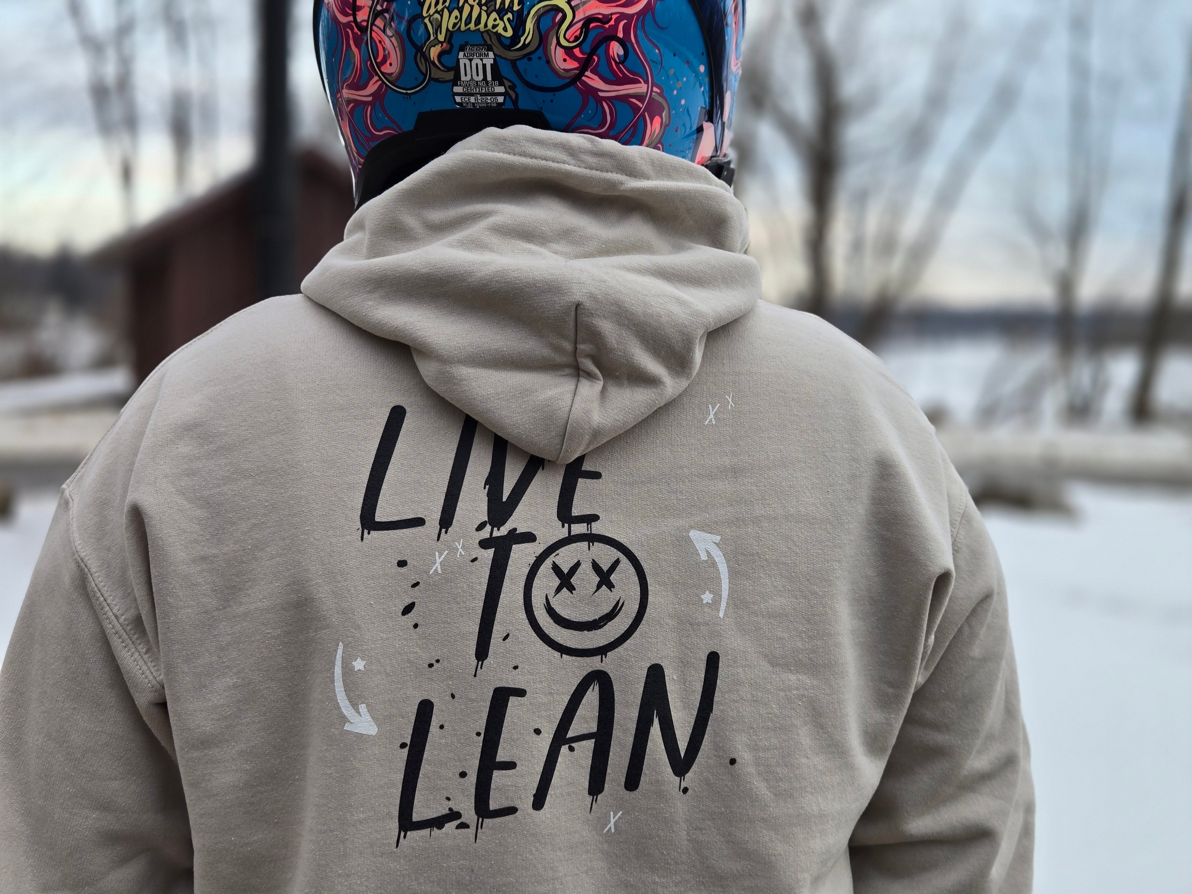 The “Live to Lean” design was the first one that really felt right. It’s one of the first pieces that’s actually stuck with me on this journey, and it means something—it speaks to the people who ride, and the ones who are chasing that lifestyle.