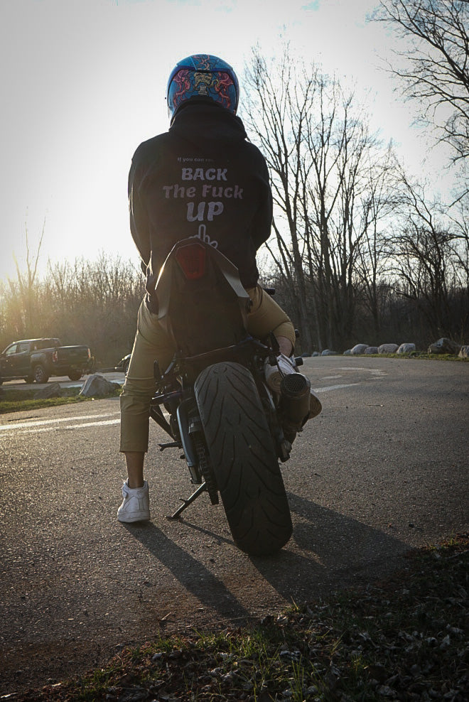 I’m proud to say I’ve kept my passion for riding alive—both on the road and through my clothing designs.
